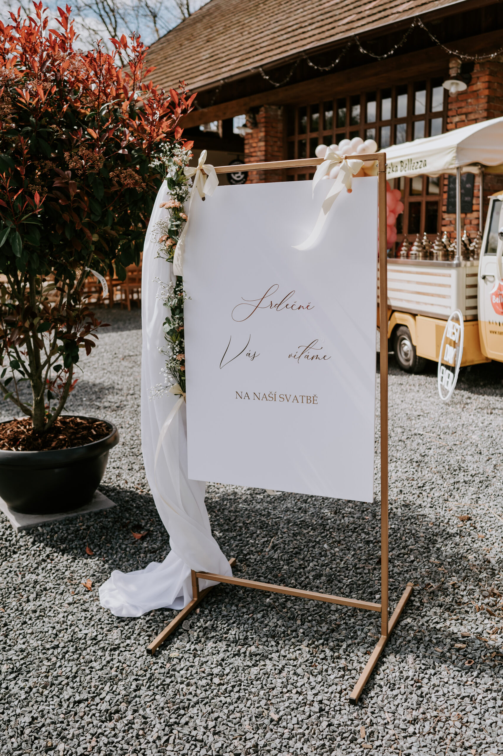 jmenovky, menu, harmonogram, popisky míst, uvítací tabuli, svatební knihu hostů, truhličku na svatební dary, …